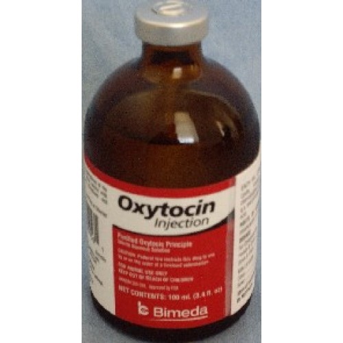 Injectable Oxytocin used to stimulate contractions of the uterus, and release of milk.
